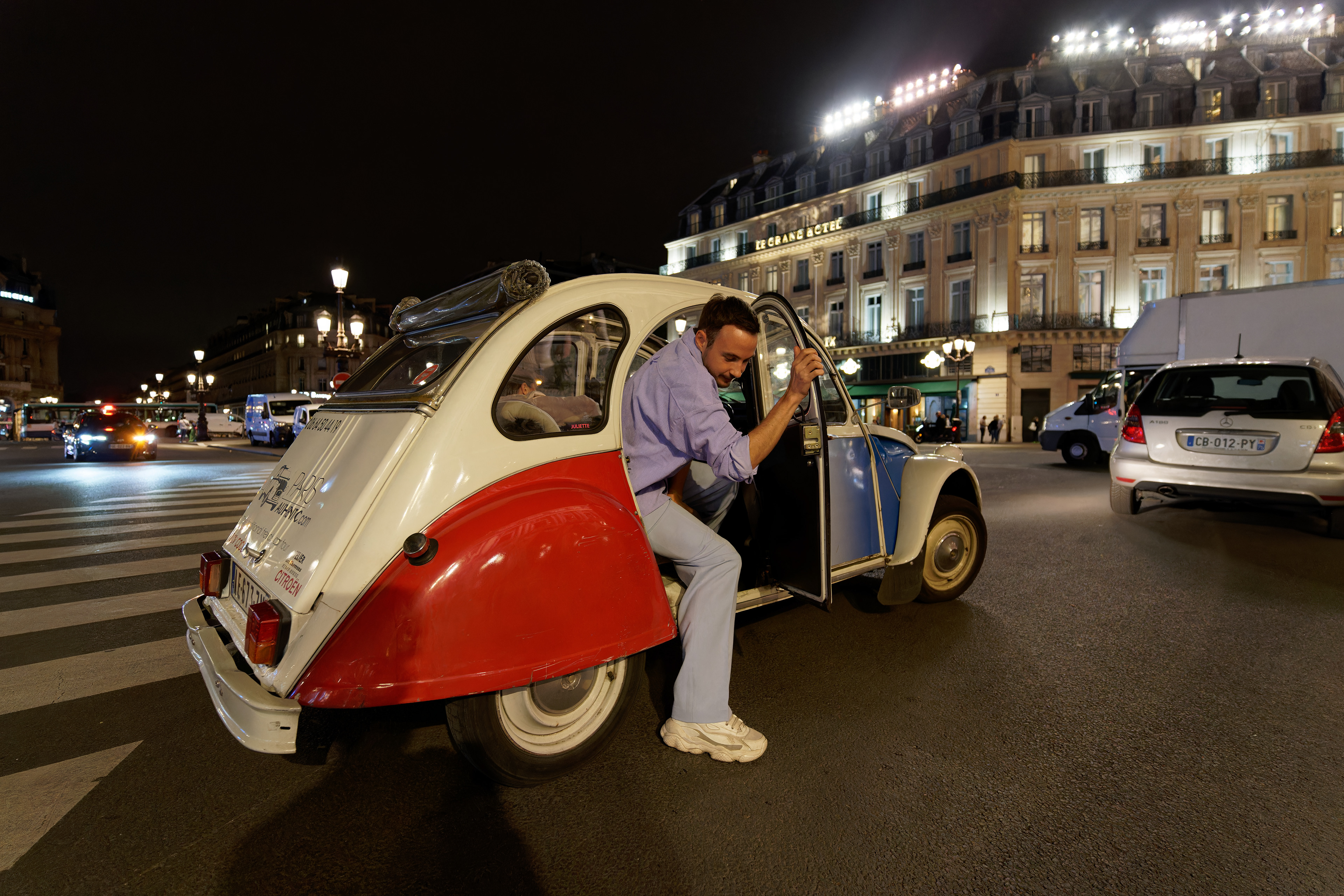 Paris By Night in a Vintage Car